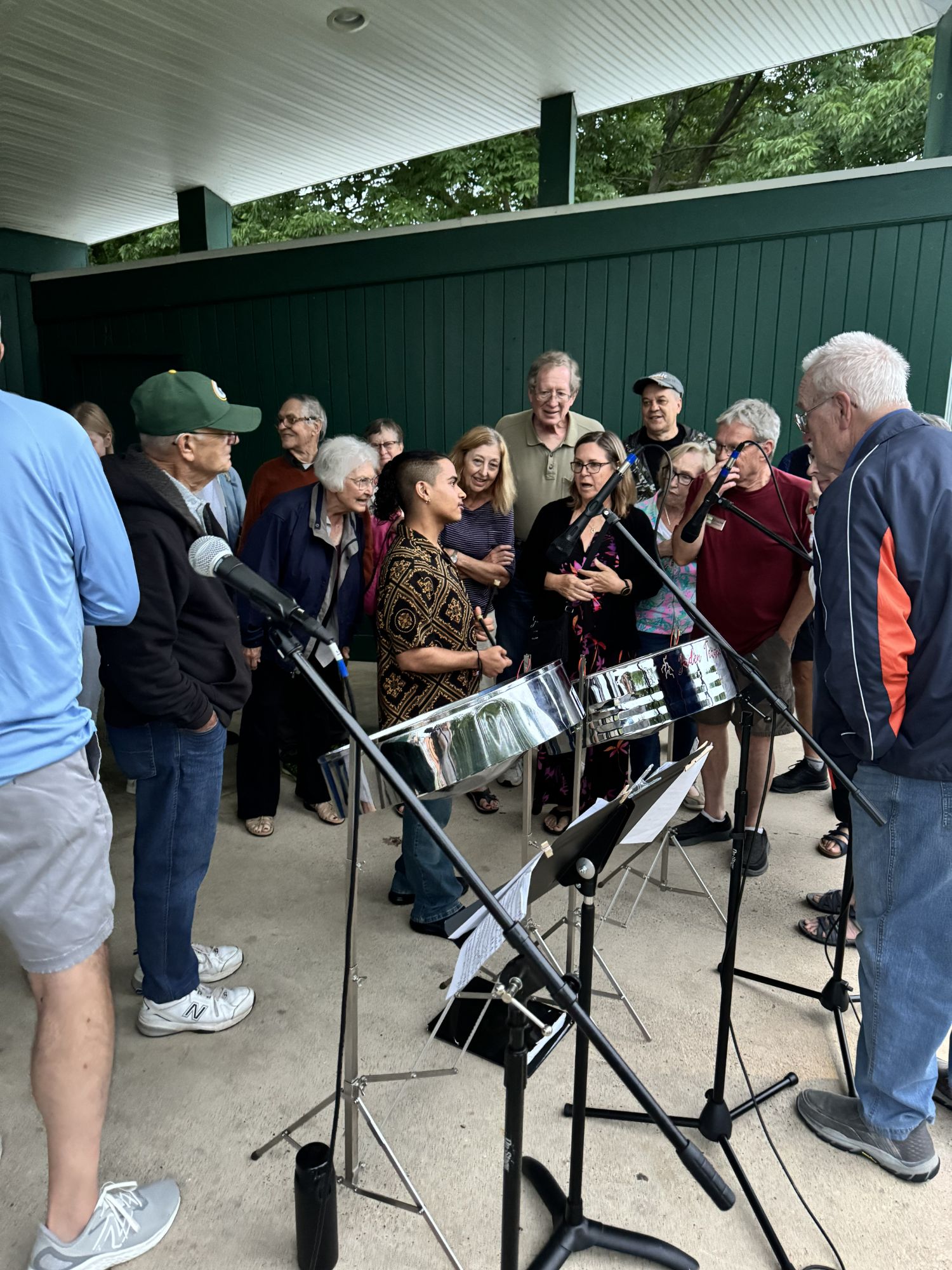 The father-son duo TNTeague (Liam Teague and Jaden Teague-Núñez) played steelpan, piano, and percussion in an outdoor concert in Deacon Mills Park, Green Lake, on June 27. Audience members brought their own seating and refreshments, and enjoyed music by Antonio Vivaldi, Astor Piazzolla, Liam Teague, Frédéric Chopin, Lord Kitchener, Gary Gibson, G.H. Green, and Zeqhuina de Abreu.